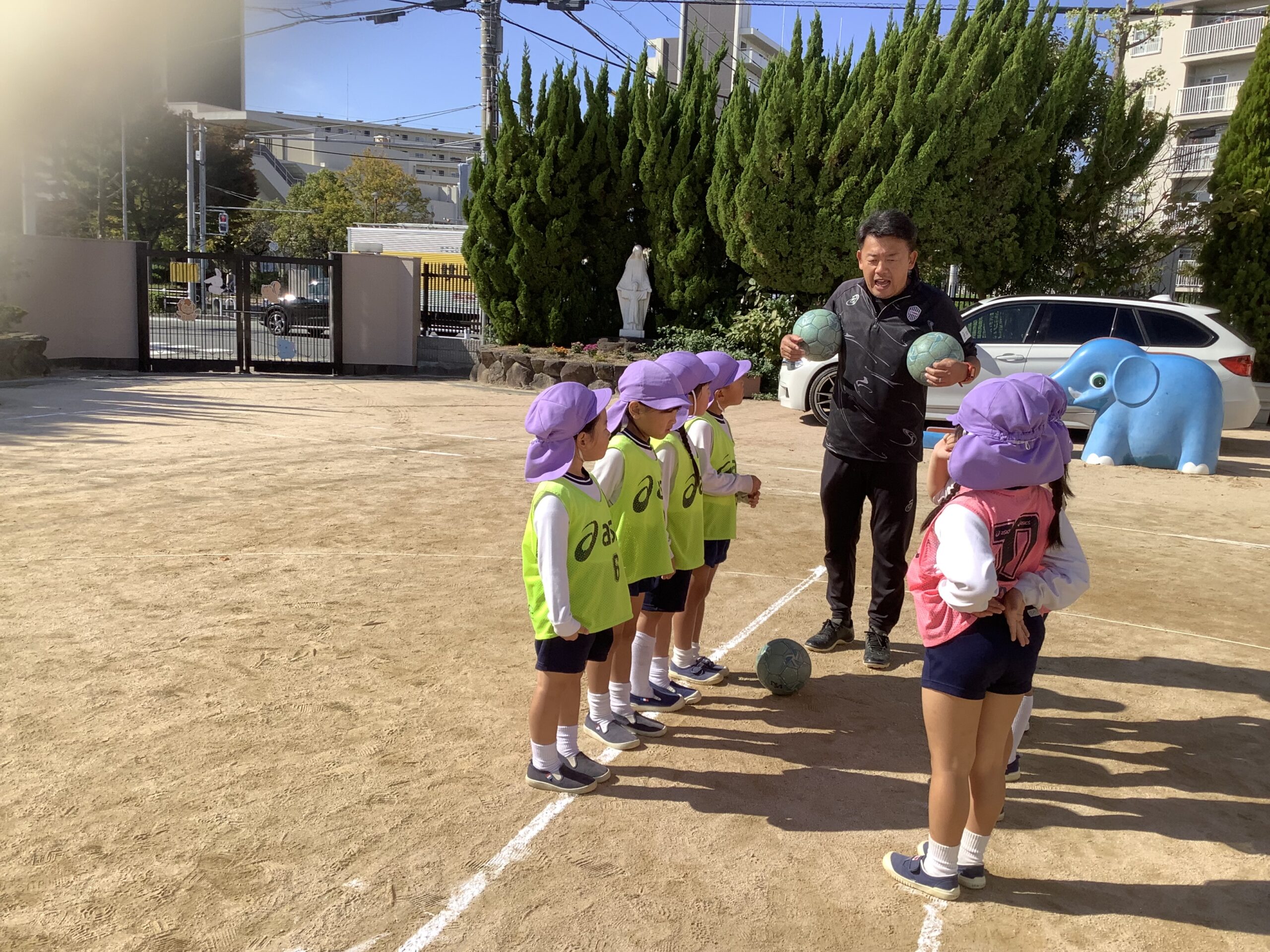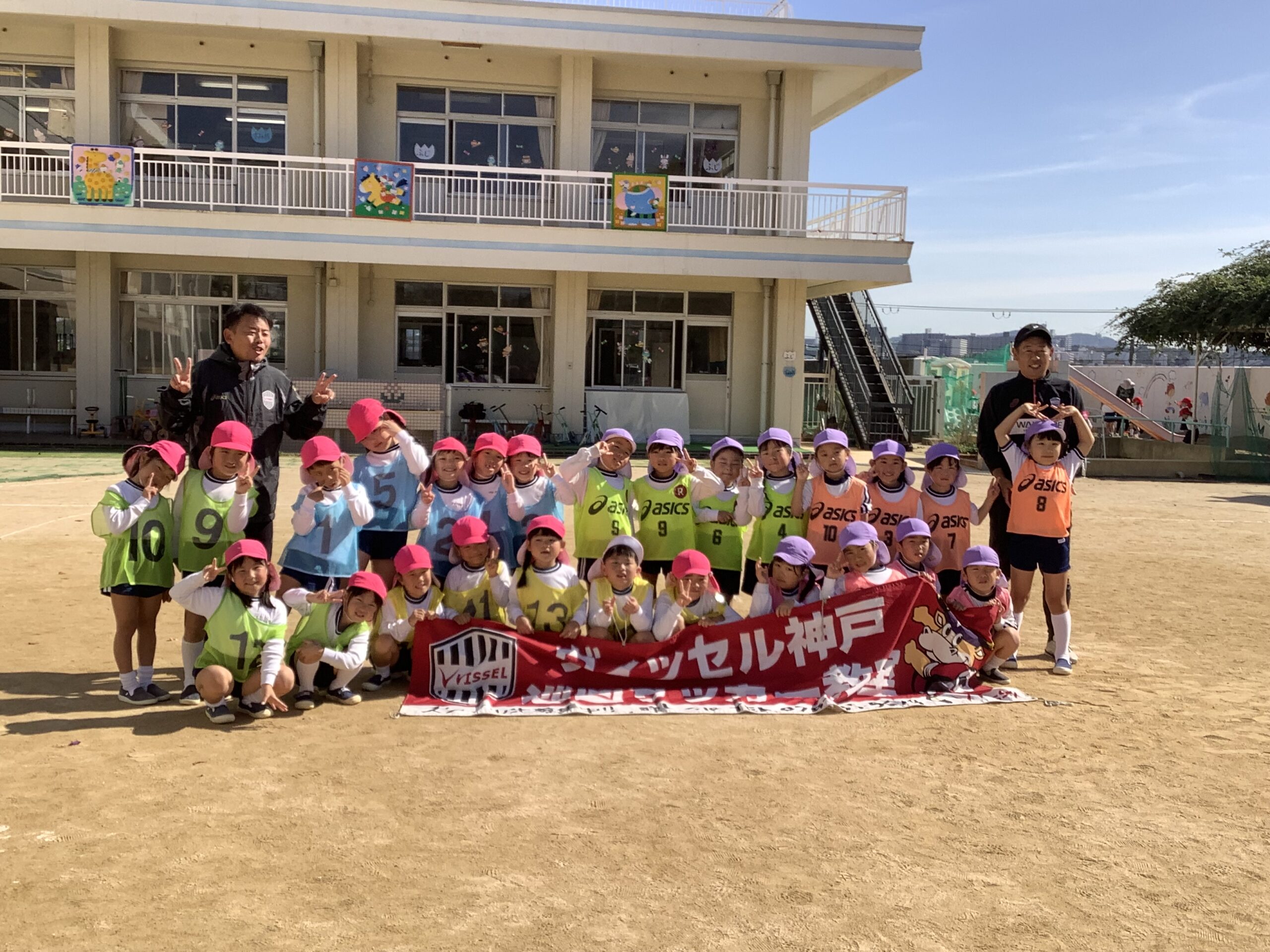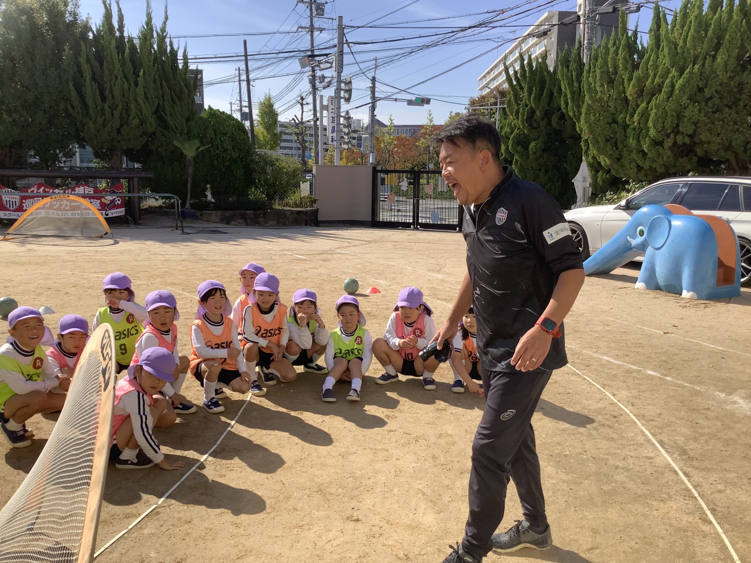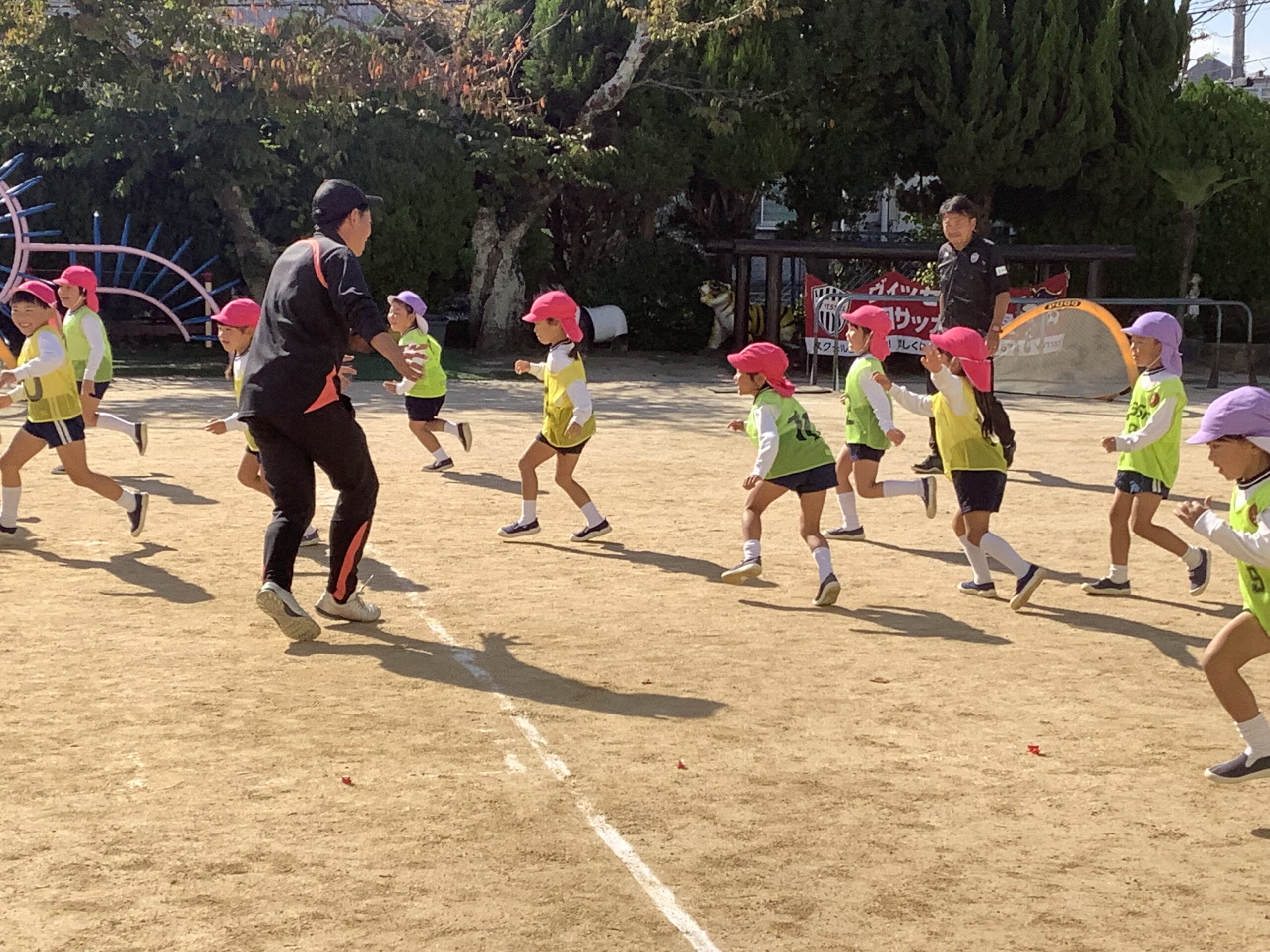 ヴィッセル神戸よりコーチが2名来てくださり、年長組がサッカー教室に参加しました。