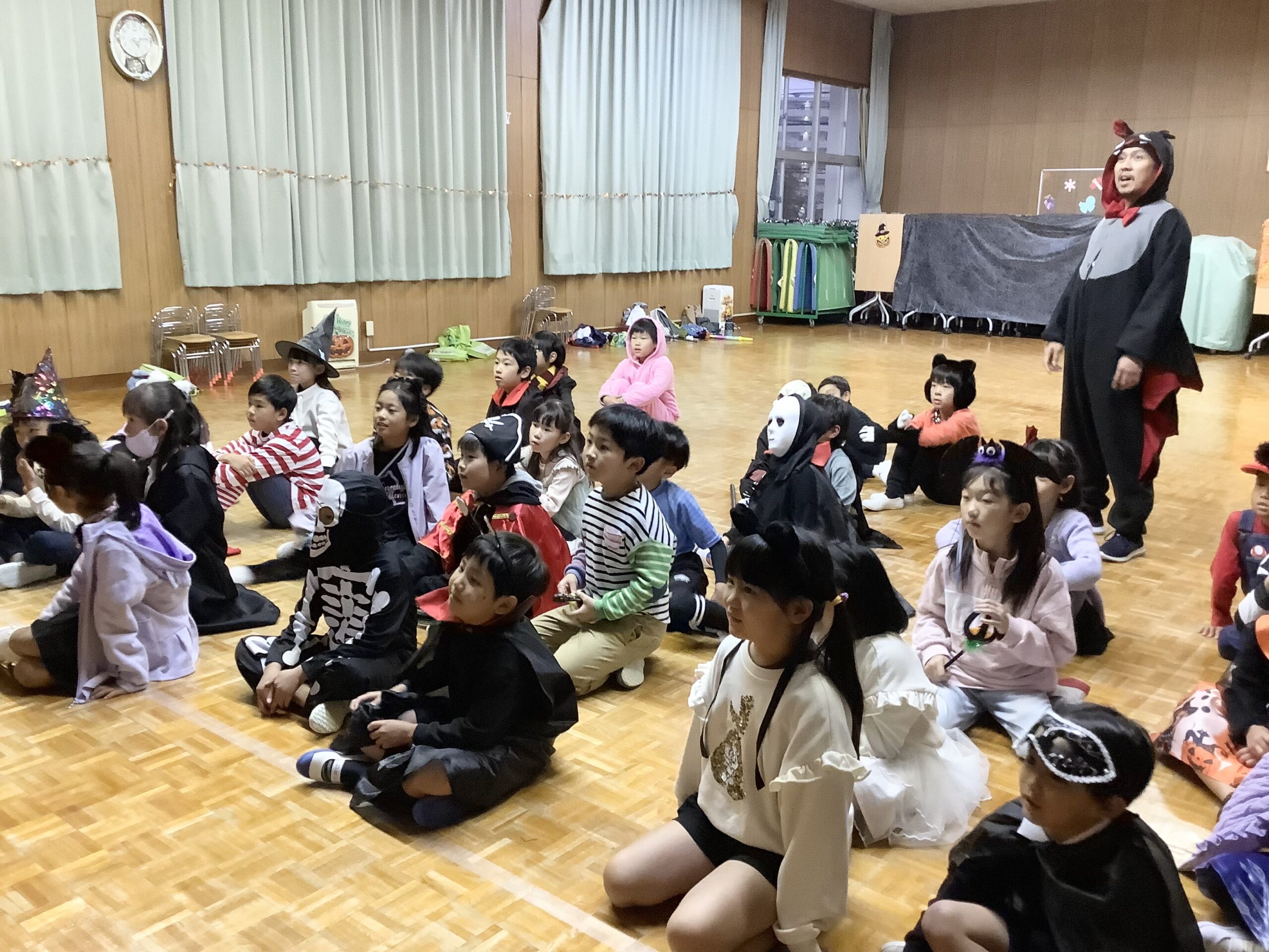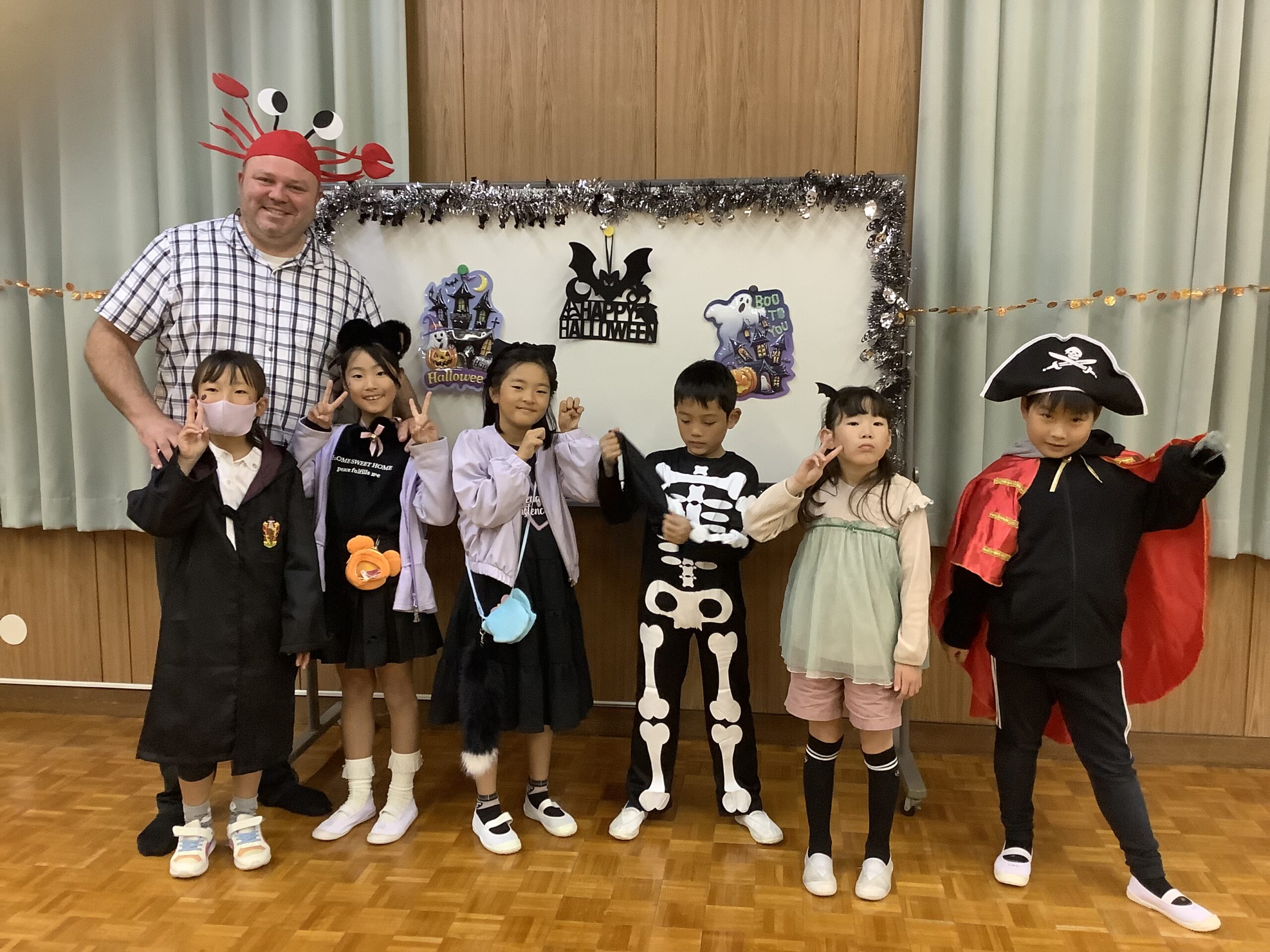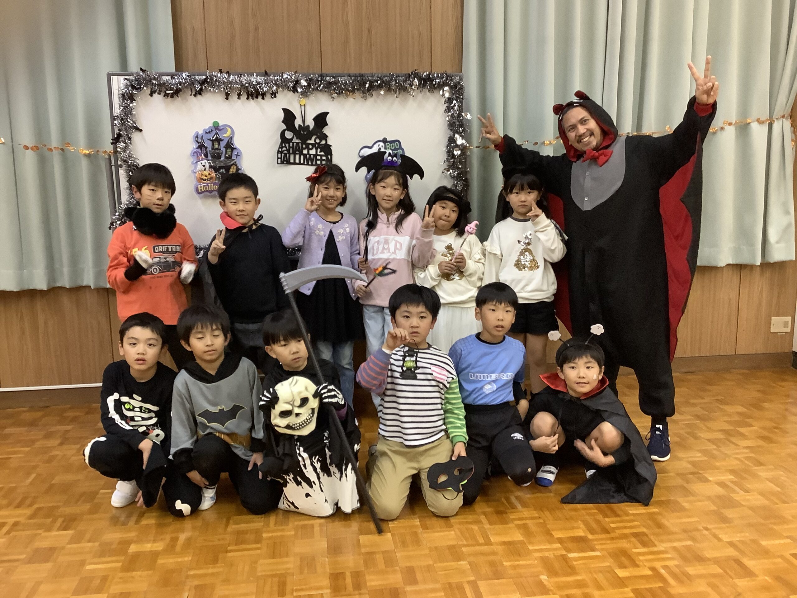English Club《ハロウィンパーティー》 2025.11.04 イベント 卒園児のための英語教室『English Club』 今日はハロウィンパーティー! 思い思いの仮装が素敵です。 写真撮影をしたりゲームをしたり、先生方と楽しい時間が過ごせました。 「Trick or Treat!」 みんなにはハロウィンドーナツのプレゼントです。 やったね。みんな嬉しそうなお顔。「Happy 〜Halloween🎵」